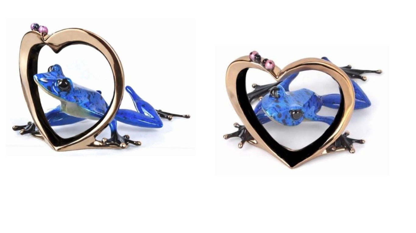 Tim Cotterill’s bronze frog sculptures capture the whimsical character, the jewel-like quality and the pure JOY of these beautiful little creatures. “Through the centuries and throughout the world, frogs have symbolized many things – Good Luck, Royalty, Fertility, Magic Potions, Energy, Charm. In today’s fast world, life sometimes becomes complicated and stressful. As you can see, my art is not. It’s Elegant, Stylish, Whimsical, Unique and pure FUN! As children we were excited to see our first frogs. They made us laugh when they jumped our way! We were curious about the strange way they felt; the odd way they moved and their simple contented look. I used to watch frogs at my pond in England, noting how each one had its own color markings, character and even personality.”